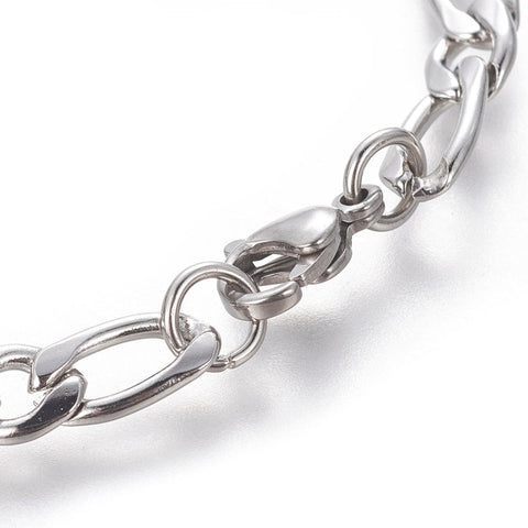 304 Stainless Steel Figaro Chain Bracelets, with Lobster Claw Clasps, Stainless Steel Color