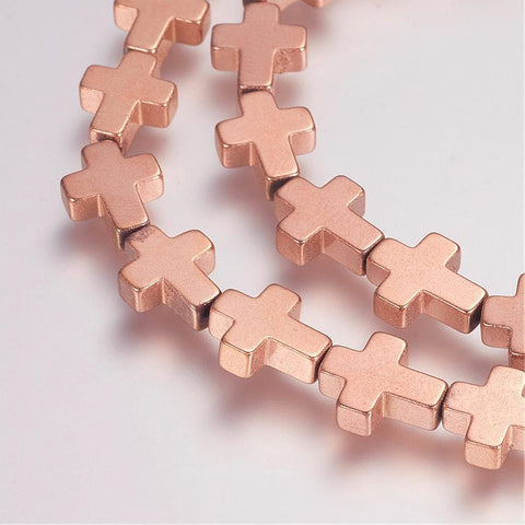 Electroplate Non-magnetic Synthetic Hematite Beads , Grade AA, Cross, Rose Gold Plated