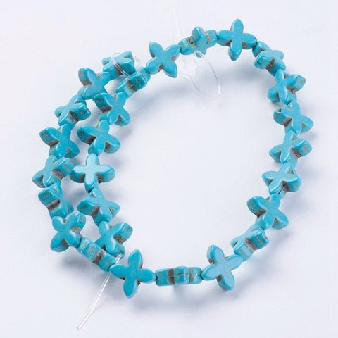 Synthetic Turquoise Beads Strands, Cross, Dyed & Heated, DarkTurquoise (CR5238)