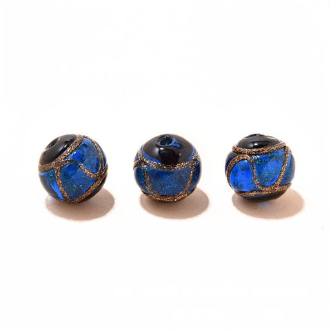 Handmade Gold Foil Lampworks Beads, Round, Blue Size: about 8mm