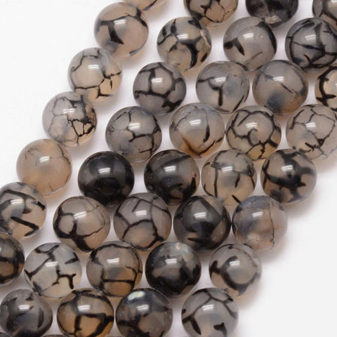 Natural Dragon Veins Agate Bead Strands, Round, Grade A, Dyed & Heated, Coffee