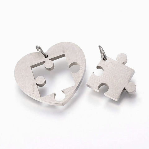 Size: heart: about 28mm wide, 24mm long, 2.5mm thick, hole: 5mm; puzzle: about 17.5mm wide, 17.5mm long, 2.5mm thick, hole: 5mm.
