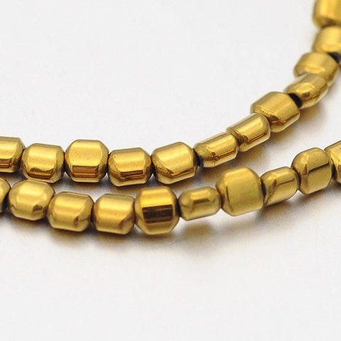 Hematite Beads Strand, Column, Golden Plated 3MM (HB5119)