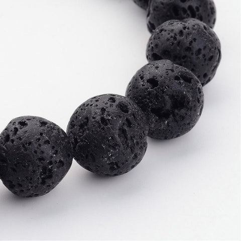 (LB5386) Natural Lava Beads Strands, Black, Round about 18mm