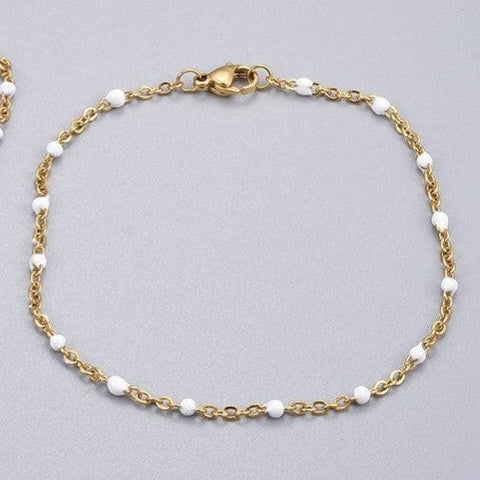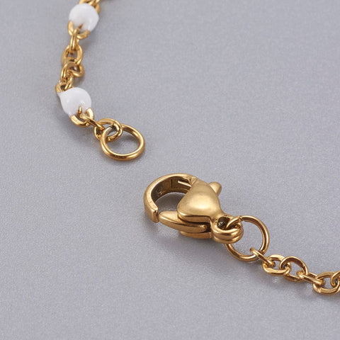 304 Stainless Steel Bracelet, with Enamel, White 20CM