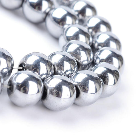 Non-magnetic Synthetic Hematite Beads Strands, Grade A, Round, Platinum Plated
