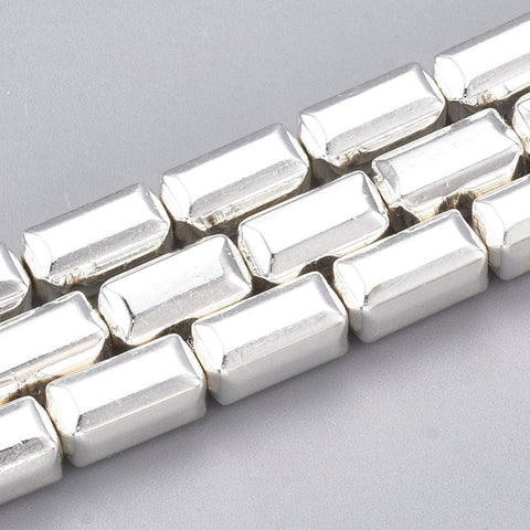 Electroplate Non-magnetic Synthetic Hematite Beads Strands, Cuboid, Silver Plated