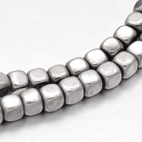 Cube Electroplate Non-magnetic Synthetic Hematite Beads Strands, Silver