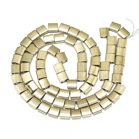 BeadsBalzar Beads & Crafts Electroplate Non-magnetic Synthetic Hematite Multi-Strand Links, 2 Hole, Rectangle, Real 18K Gold Plated 5.5x5mm, 2mm thick (40cm)
