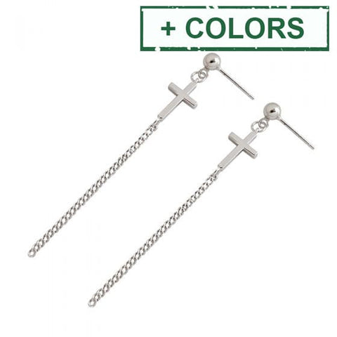 Elegant Cross Curb Chain 925 Sterling Silver Dangling Earrings