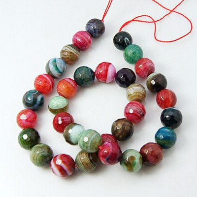 ​​Natural Striped Agate Beads Strands, Dyed, Faceted, Round, Striped Agate