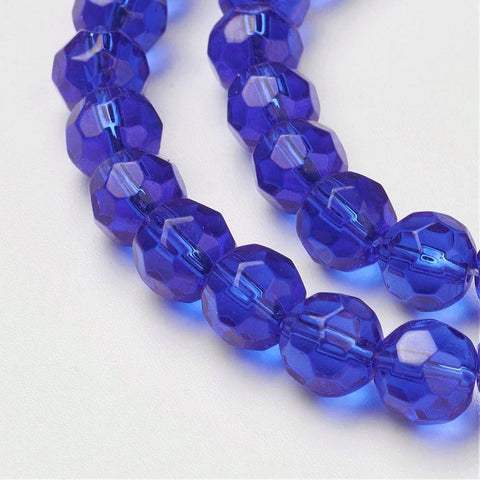 Glass Beads Strands, Faceted, Round, Blue 8mm