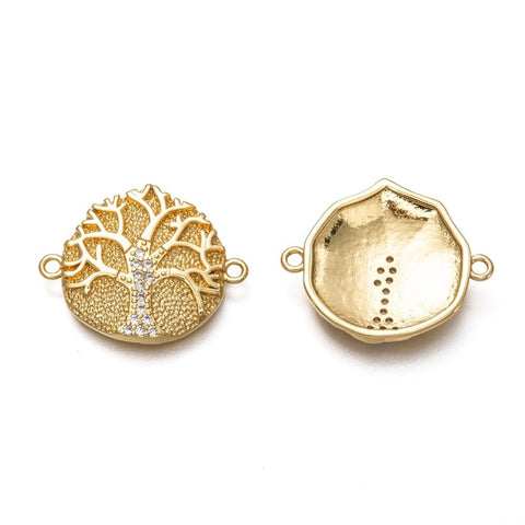 (GQT8320-23G) Brass Zirconia Links Tree of Life, Real 18K Gold Plated 19mm (1 PC)