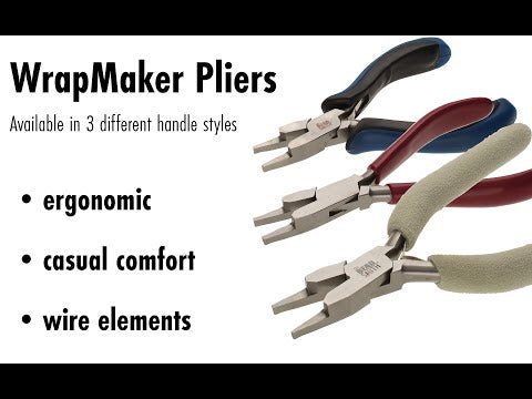 Simplify wire wrapping with The Beadsmith's WrapMaker pliers. Designed to bend- shape- pull and position wire- this tool does everything you can do with a flat nose plier- including wrapping a bundle of wire in three easy steps. The pliers are made from high-quality steel and built to last. The jaws are polished to prevent marking your wire. They are constructed to have a longer end that securely holds your wire while the shorter jaw is convenient to do the wrapping. Our WrapMaker comes in three different styles: an ergonomic comfort grip- a Casual Comfort wider grasp and a Wire Elements longer handle. The all feature double leaf springs- which aid in hand fatigue often associated with repetitive movements. Additionally- the plier can be comfortably used by both left and right-handed people. To use- hold the bundled wire to be wrapped with the long side of the jaws. Next insert wrap wire as far as possible into the short side of the jaws. Then being wrapping the wire around the bundled wire.