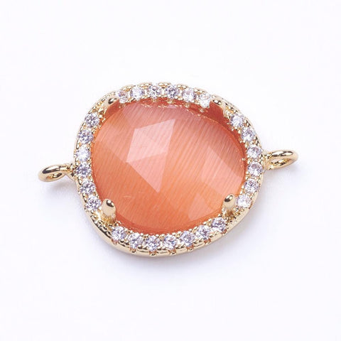 (GQL7488-1) Brass Micro Pave Cubic Zirconia Links, with Faceted Glass Oval, 14x21mm (1 PC)