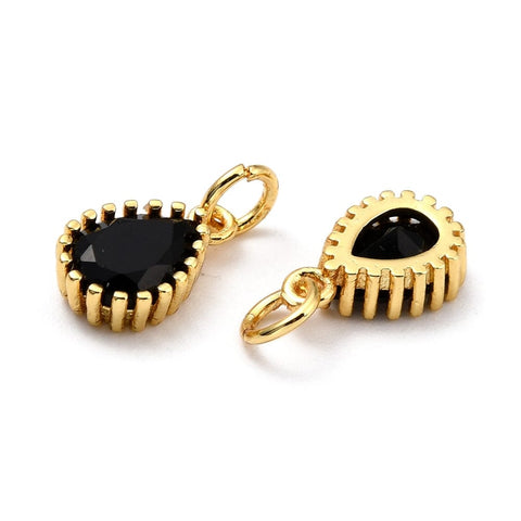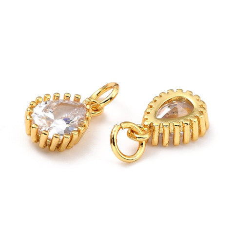 (GQD8005-X) Brass Micro Pave Cubic Zirconia Pendants Teardrop, 7.5x12mm (2PCS)