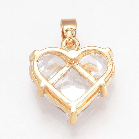 Brass Cubic Zirconia Heart, Golden, 15x14mm