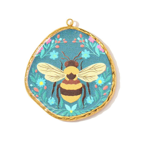 304 Stainless Steel Bee Pendant 18K Gold Plated 32mm Colorful