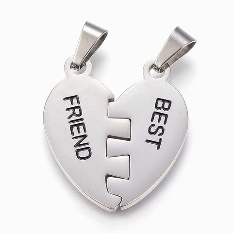 304 Stainless Steel Split Pendants, with Enamel, Heart with Word Best Friend, about 30mm wide