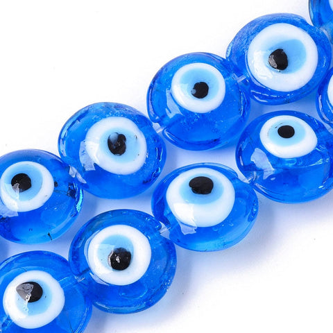 (EY7183A) Handmade Evil Eye Lampwork , Flat Round, Blue 16~17mm (10 PCS)