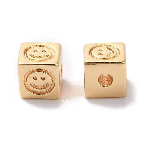 BeadsBalzar Beads & Crafts Brass Beads, Cube with Smiling Face Pattern, Real 18K Gold Plated, 4x4x4mm