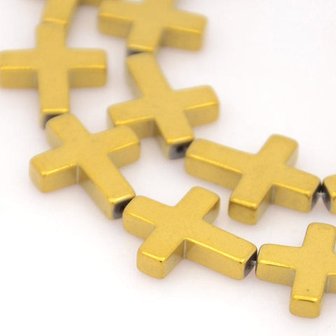Electroplate Non-magnetic Synthetic Hematite Cross, Golden Plated