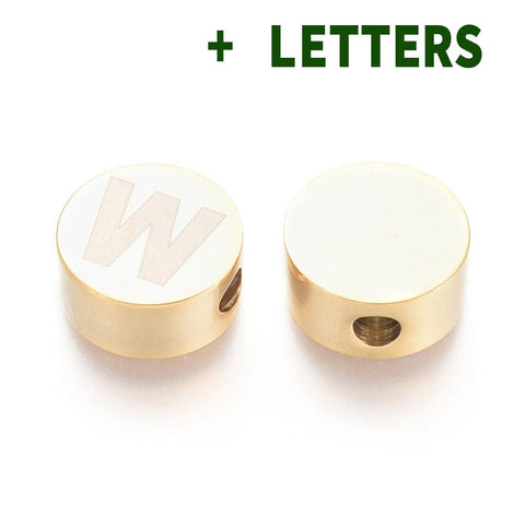 (LE7908X) 304 Stainless Steel Beads, Flat Round Letter, 10mm (1 PC)