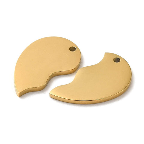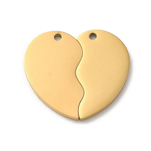 Custom Laser Engraved 304 Stainless Steel Split Pendant Charm, Heart Charm, Golden