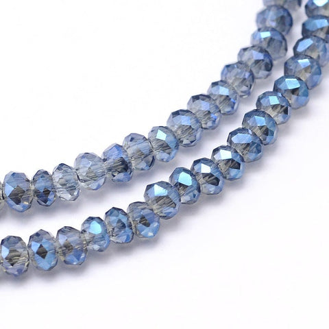 Faceted Abacus Full Rainbow Plated Electroplate Glass Beads Strands, MarineBlue (BE4600)