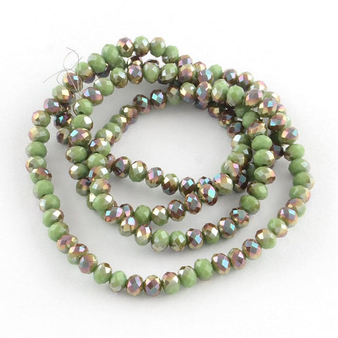 Electroplate Glass Faceted Abacus Bead Strands, Half Rainbow Plated, PaleGreen