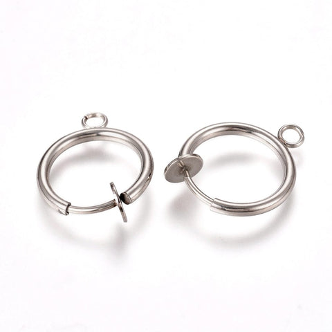 304 Stainless Steel Clip-on Earring Findings, For Non-pierced Ears, with Loop & Spring Findings, 17x13x4.5mm, Hole: 1.8mm