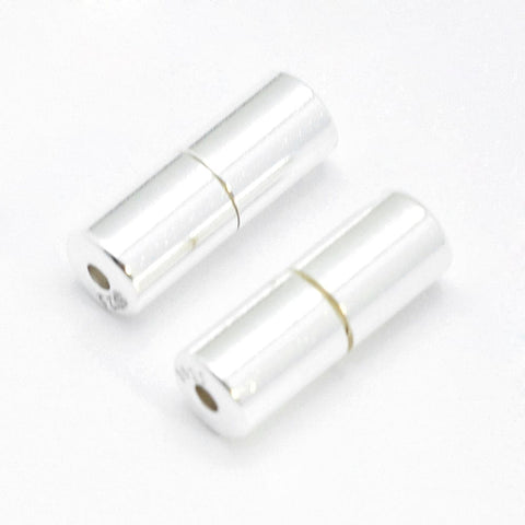 925 Sterling Silver Screw Clasps, Column, Silver 4x11mm