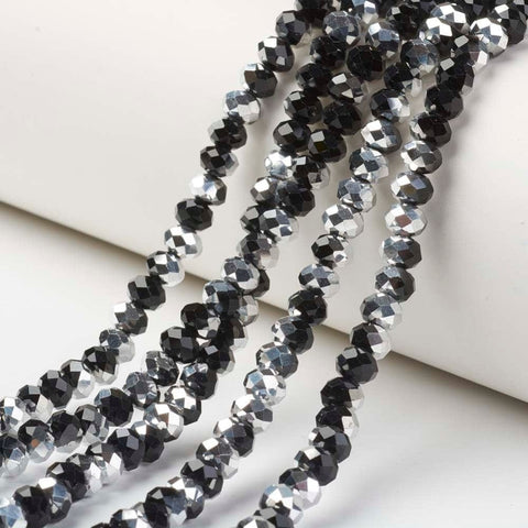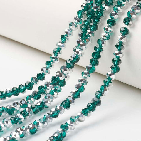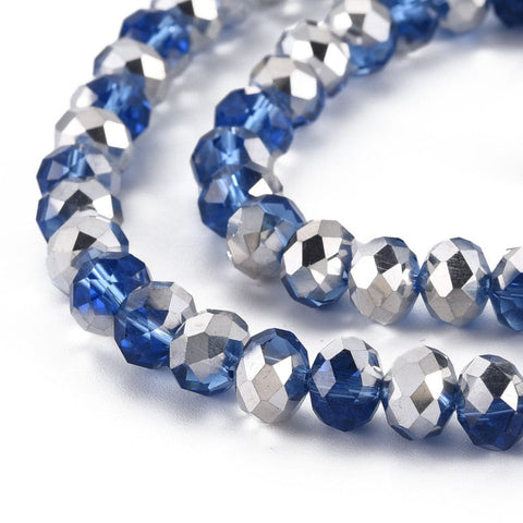 Electroplate Transparent Glass Beads Strands, Half Silver Plated, Faceted, Rondelle, Choose Color