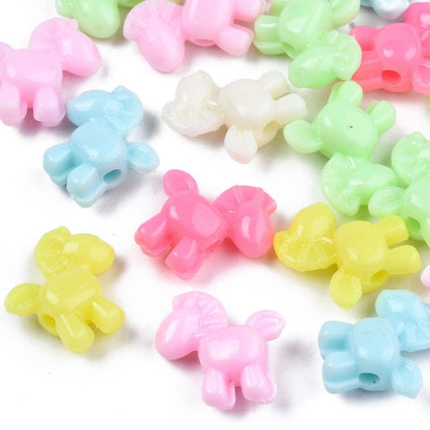 Opaque acrylic beads featuring a fun horse design. Available in a mix of vibrant colors, these beads measure 16x16x7mm and have a 2mm hole for easy stringing. Ideal for creating unique jewelry, embellishing accessories, or adding a whimsical touch to kids' crafts and decorations. These versatile beads are perfect for DIY projects, including charm bracelets, keychains, and personalized gifts.