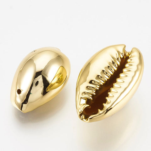 (SH5639) UV Plated Freshwater Shell Pendants, Cowrie Shell, Golden Size: about 17~21mm (5 PCS)