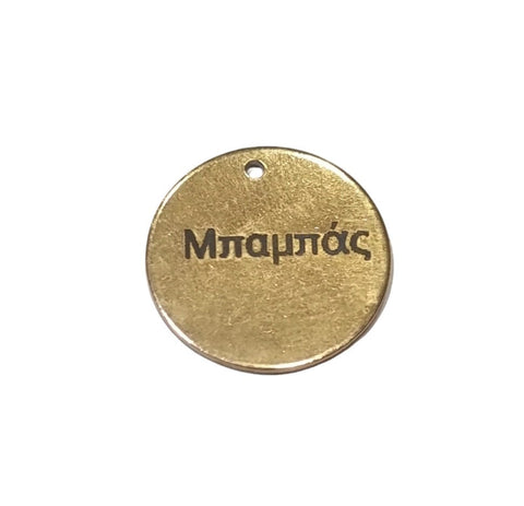 Ion Plating(IP) 304 Stainless Steel Laser engraved 'Μπαπάσ΄' Flat Round , Golden
